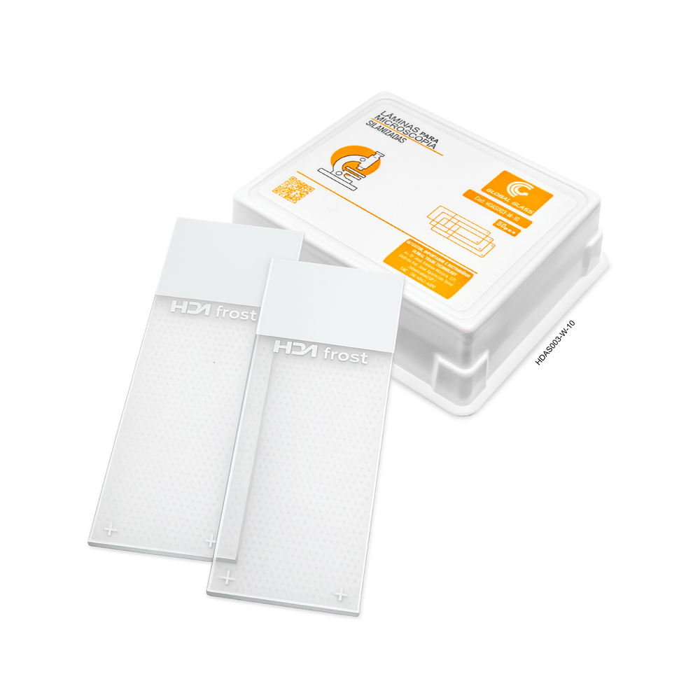 Lâminas de vidro mod: HDAS003-W-10, indicadas para melhorar aderência em preparações citológicas. Silanizadas, tratadas com silano para fixação eficiente de amostras, evitando bolhas de ar. Compatíveis com diversos suportes e equipamentos de microscopia padrão.